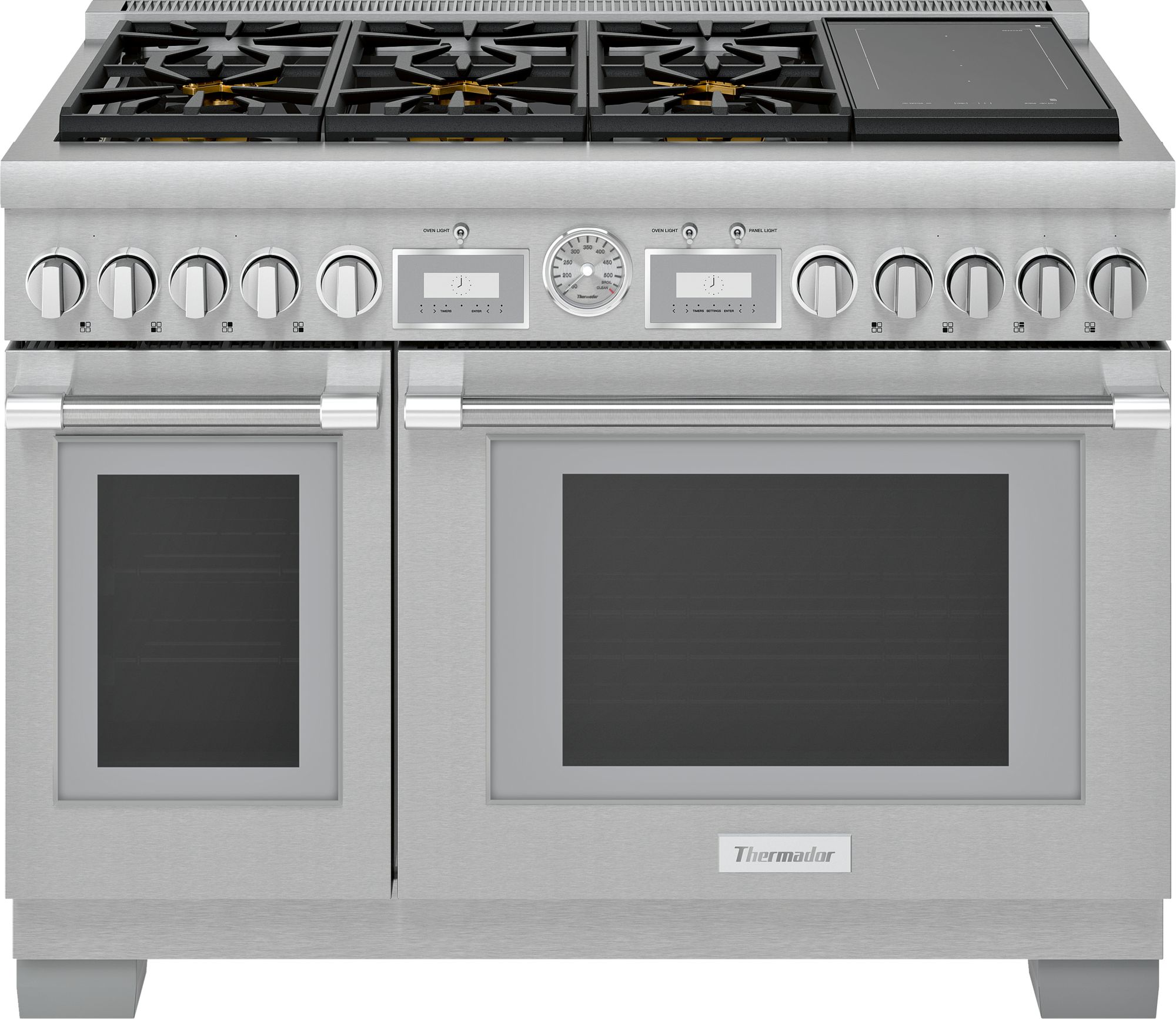 Six rack levels in each oven for multiple item cooking